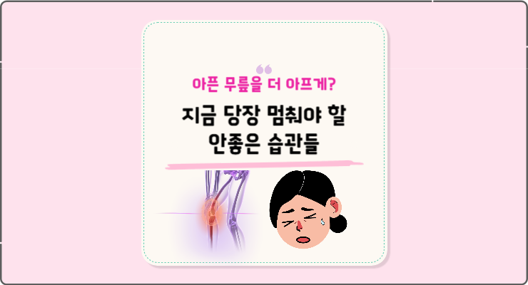 이번 글에서는 퇴행성관절염을 악화시키는 생활습관 7가지와 그 대안 행동까지 자세히 알려드립니다.